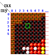 マップ上のmx,myにおけるキャラクタパターン番号を返します